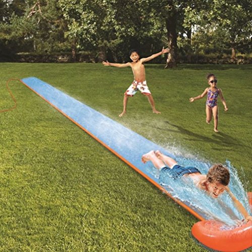 Studio : unknown Publisher : unknown Binding : Toy Product Description Designed to take the "ouch" out of backyard water slides, the innovative H2OGO! slides are the world's first line of water slides to feature the patented Speed RampTM, a tough, inflatable launch pad that creates a smooth, big splash belly-flop landing while propelling riders head first into a superfast ride down the 18-foot slide. The addition of a Splash Lagoon beneath the Speed Ramp creates a drenching good takeoff, and funnels water throughout the entire slide, reducing friction and increasing speeds as riders skim their way through a gushing cascade towards the final deluge in the drench pool. Easy to set up in just minutes, the H2OGO! water slides come in a single, double and triple model, adding a new level of interactive outdoor fun by allowing kids to compete against their friends for the title of neighborhood champion, while keeping cool all summer long. "The H2OGO! line of slides are designed to get back to the basics of what an outdoor water slide is supposed to be about: the fastest, wettest and most fun way to keep cool all summer long," said Andrea McCoy, Marketing Manager - Bestway USA, Inc. . "For years, backyard water slides have been a staple of outdoor fun, but innovation has led to increasingly complex designs and gimmicks that only serve to raise prices and do nothing to increase the slides performance. The H2OGO! line of water slides is focused on putting the fun back into water slides with a dose of much needed innovation that results in a faster, safer and more exciting sliding experience." H2O-GO with the SPEED RAMP provides a soft landing and glides you onto the slide for the smoothest, wettest, fastest ride! INCLUDES: 1 Single Water Slide 2 Hose Nozzle Connectors 1 Repair Patch. Easy Set Up: 1. Clear set-up area of any debris. 2. Fill the Speed RampTM with water to anchor and inflate. 3. Connect your garden hose and GO! 0