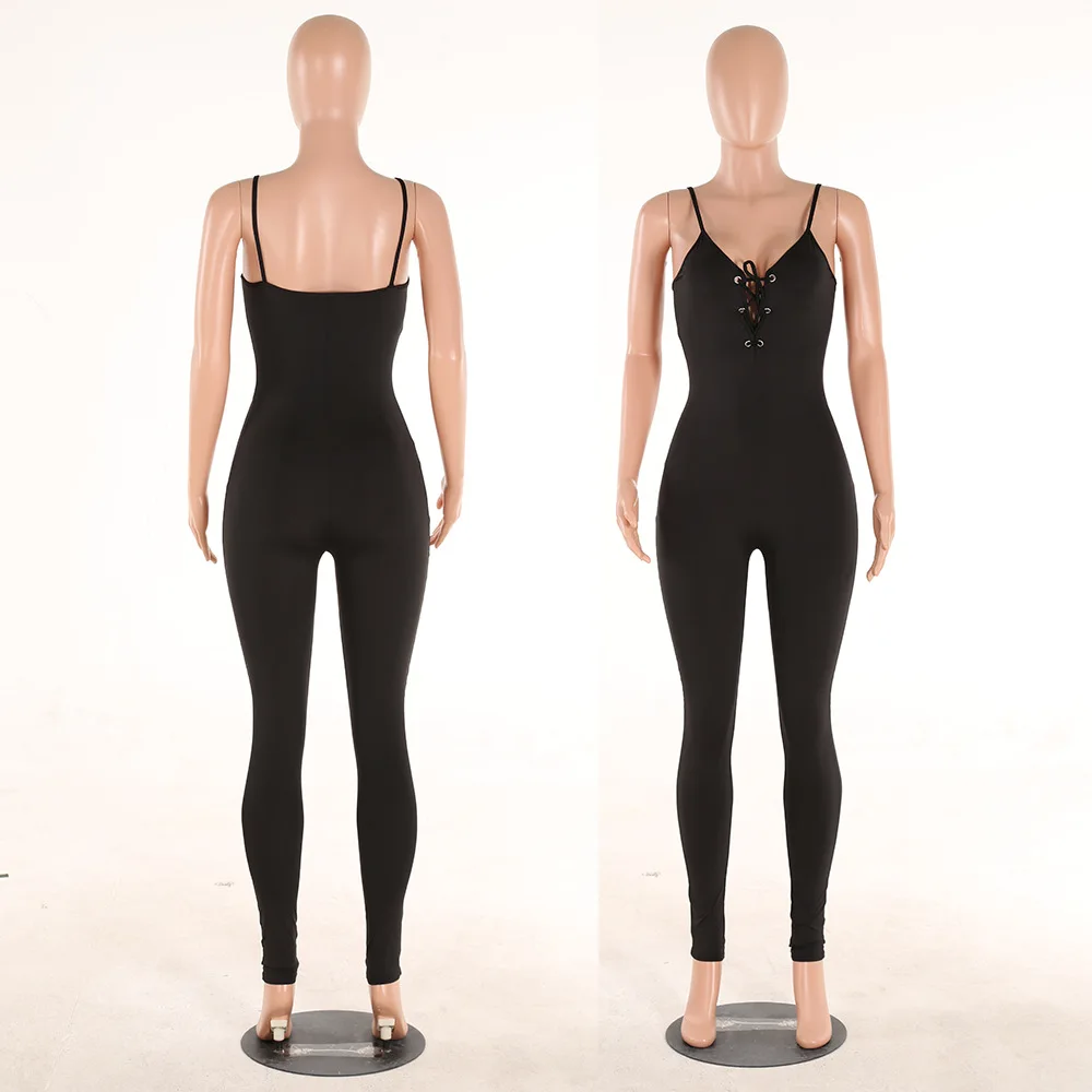 Key words:one piece jumpsuit,rompers and jumpsuits,black lace up jumpsuit