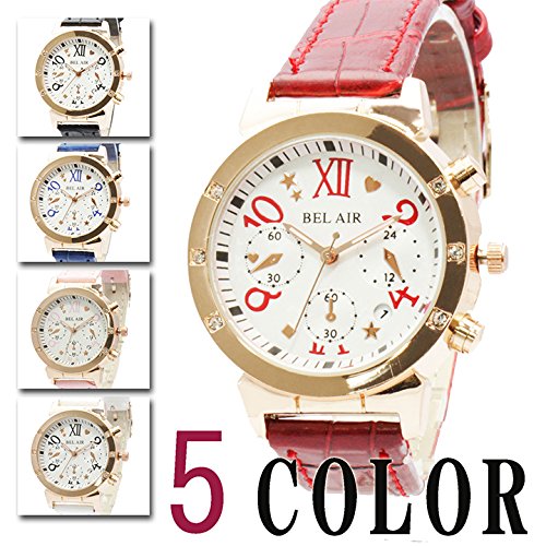 -. Title : OSD46 星やハートのインデックスが可愛い ラインストーン入りベゼル レディース 腕時計