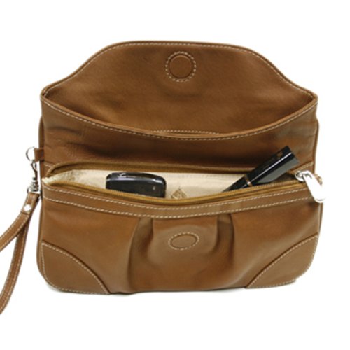 Piel Leather Clutch Large Wristlet, Saddle, One Size