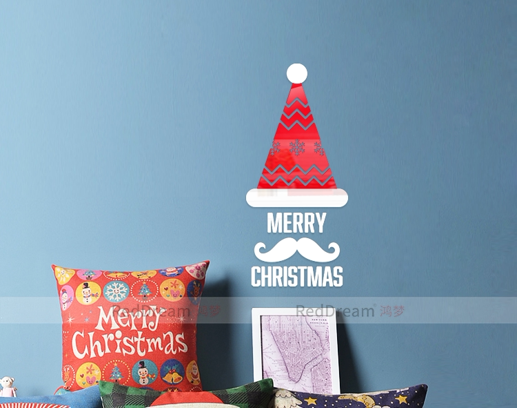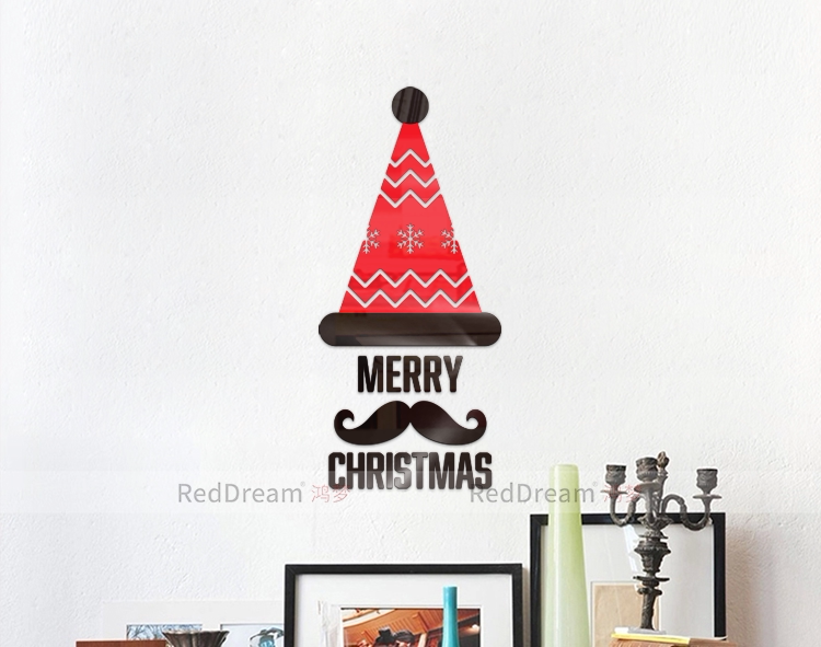 雪花胡子圣诞帽3D立体亚克力节日装饰客厅卧室门创意背景墙贴画