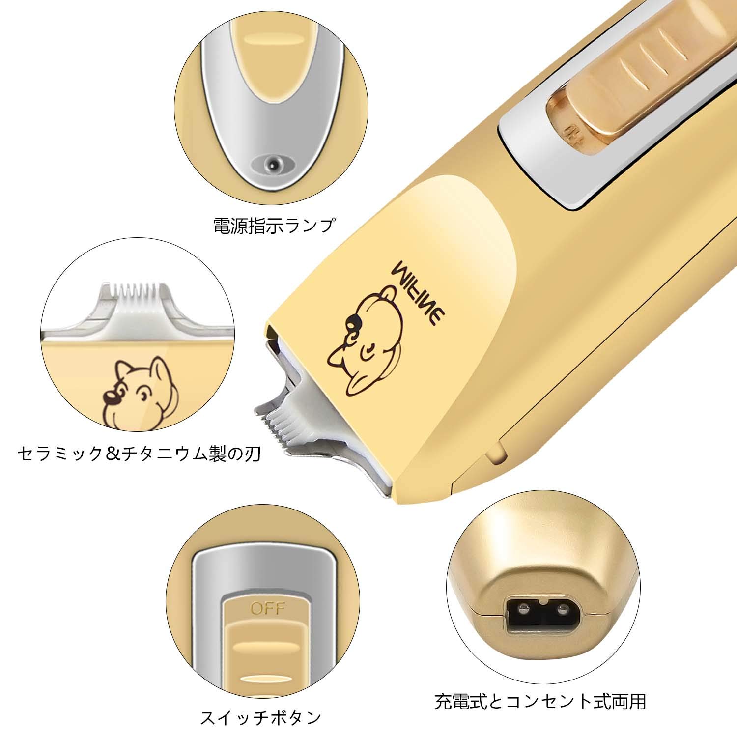 【同梱内容】ペット用シェーバー本体x1、替刃x1、充電器x1、アタッチメントx2、クリーニングブラシx1、日本語取扱説明書x1