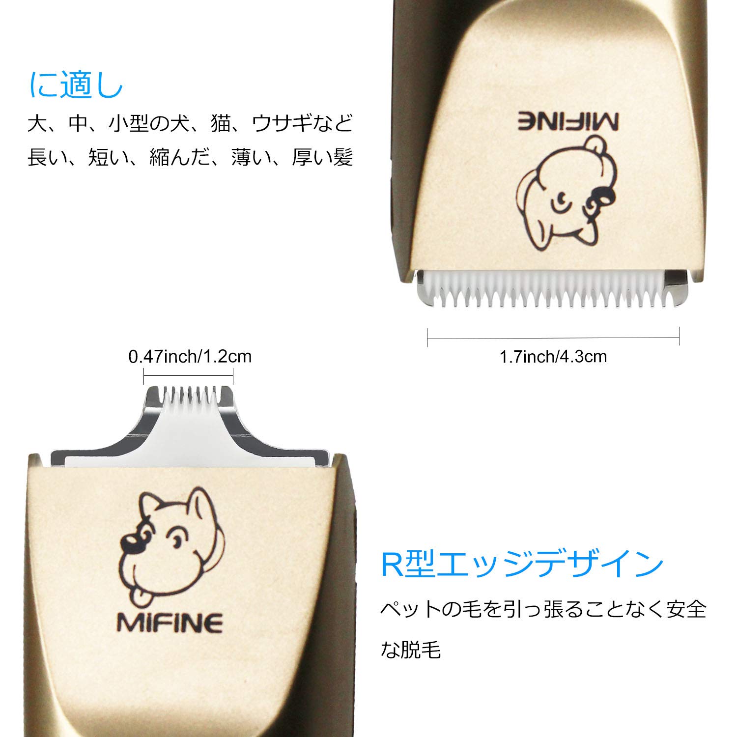 【切れ味抜群】セラミックとチタニウム製の刃で切れ味抜群です。普通サイズ・小さいサイズのカットヘッドが付いており、放熱効果が高い為、長時間の使用でもペットが熱を感じることなくスムーズなトリミングが行えます。