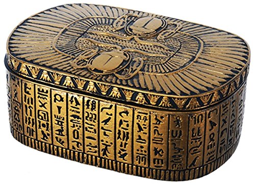 Egyptian Themed Dual Winged Scarab Amulet Golden Jewelry Trinket Box