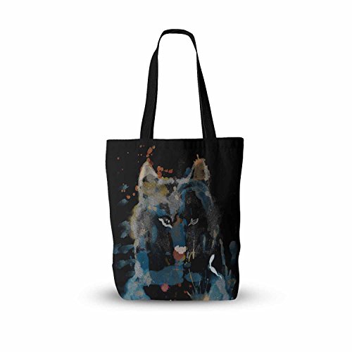 KESS InHouse Frederic Levy-Hadida "Watercolor Foxy" Black Blue Watercolor Everything Tote Bag, 13" x 13", Multicolor