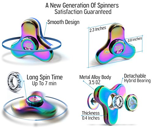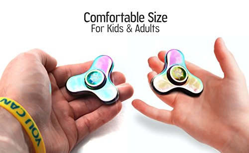 ✅ KIDS LOVE IT! - Superbly Designed Mini Metal Fidget Spinner, Unique & Exclusive model. It has no comparisons on the market. We have developed a unique design of Figets Spinners, rounded and smooth shape of metal alloy body - Every Fidget Spinner has an excellent prime quality along with a shiny bright and colorful rainbow color