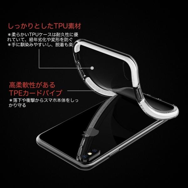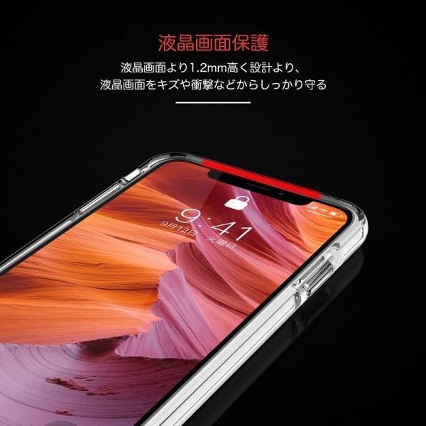 (4)全面保護+衝撃吸収 :スマホの画面より1.2mm高いほか、カメラホールには0.4mmのくぼみがあり、四角の部分に小さな空間ができるよう設計されており、大切なスマホをダメージからしっかり保護します。また柔軟なTPU素材と頑丈なTPE素材の二重構造になっており高い耐衝撃性があります。