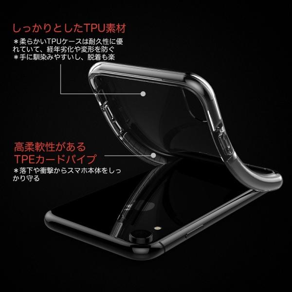 (3)QI充電対応+本体にピッタリフィット :背面部分は優れたTPU素材なので保護性が高くケースを付けたままワイヤレス充電ができます。精確なカットアウト、手にピッタリフィットしたデザインは機能性を最大限に保つよう設計されていますので各種ボタン操作も快適に使えます。