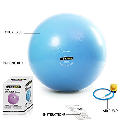 Pseudois Yoga Exercise Ball Designed to improve your core strength, balance and overall agility, Pseudois Stability Exercise Balls feature dense walls for ultimate support and durability. Pseudois Stability Ball is weight-rated up to 2,000 lbs. Specifications Material:Professional grade PVC material Independently tested up to 2,000 lbs. of static strength Includes foot pump and starter guide Available in 3 colors and 3 size Warranty Pseudois Yoga Exercise Ball comes with lifetime manufacturer's warranty
