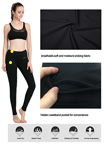 친 팬(ChinFun) 레이디스 롱 레깅스 요가 팬츠 미각(아름다운 다리) 각장(긴 다리) 효과 코지리(작은 엉덩이) 효과 미니 포켓 첨부 와 블랙 사이즈S