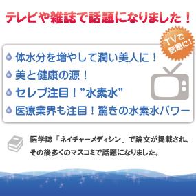 「水素水は美容によい新素材として脚光を浴び、大きな注目を集めているドリンクです。「水素水」には「水素」の作用によって健康な状態に戻す力があります。