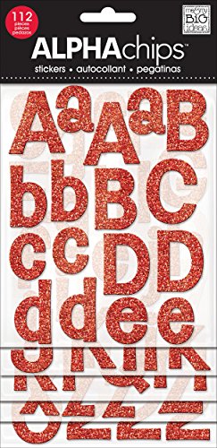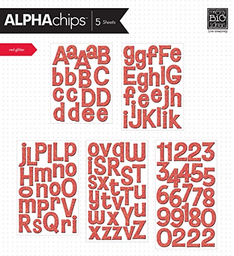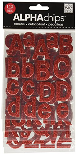 me & my BIG ideas Alpha Chips Designer Chipboard Letter Stickers, Bailey Alphabet, Light Red Glitter