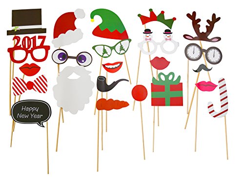 23 Colorful Photo Props HAPPY NEW YEAR Theme Attached to the Sticks - No mess, no Stress Great addition any party for fun memories Good for kids and adults Color of pictures may varies by different monitor setting. All pictures are real stock photos. The product color maybe darker than the images. Note: If any card is off on transmit, it's easy to stick it back with glue. Package:23pcs Photo Booth Props