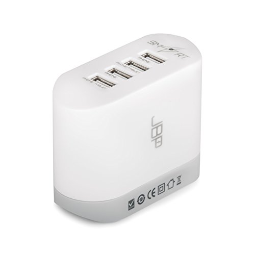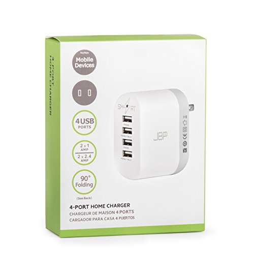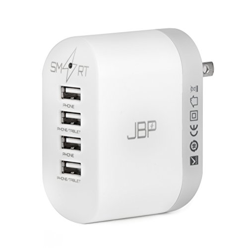 -. Title : 4-Port USB Travel Wall Charger with SmartCharge by JBP: Compatiable with iPad, iPhone, Samsung Galaxy, LG, Smartphone, Portable Battery, Bluetooth Speaker, Headset - White/Gray