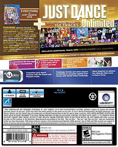 Introducing Just Dance 2016 - the newest game from the top-selling franchise - with a new way to play! All you need is your smartphone and the free Just Dance Controller App to play Just Dance 2016 on console, no Camera or Move needed. Bust a move to "Uptown Funk" by Mark Ronson ft. Bruno Mars and feel the beat in "All About That Bass" by Meghan Trainor - Just Dance 2016 features an amazing track list with visuals that are more creative and breath-taking than ever before.