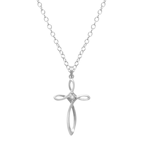 -. Title : Twisted Cross Pendant Necklace with Diamond in Sterling Silver