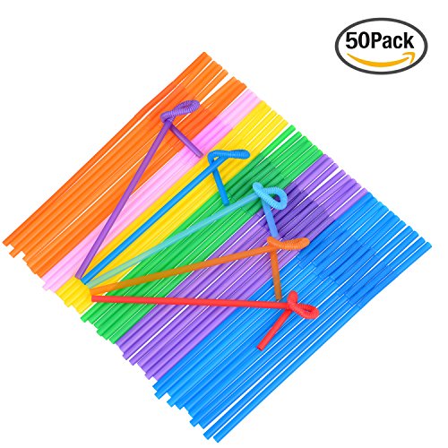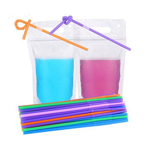 Maxdot 50 Pieces Stand-up Drink Bags Reclosable Zipper Drinking Pouches, 5.1 by 9.1 Inch, with 50 Pieces Colorful Plastic Straw