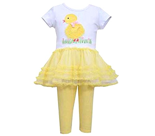 -. Binding : Apparel -. Brand : Bonnie Jean -. Department : baby-girls -. Feature : WITH BRACELET FOR MOM / Adorable for spring and Easter! Soft cotton short sleeved tunic features yellow ruffled tutu hem and little yellow chick applique. Yellow cotton spandex leggings to match. Machine wash. Imported. -. Label : Bonnie Jean -. Manufacturer : Bonnie Jean -. MPN : R04518BA -. PartNumber : R04518BA -. ProductGroup : Apparel -. ProductTypeName : SHIRT -. Publisher : Bonnie Jean -. Studio : Bonnie Jean -. Title : Bonnie Jean Baby-Girls Easter Chick Tutu Set