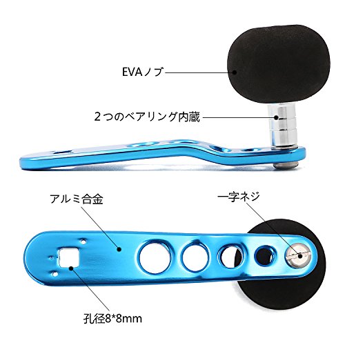 -. Feature : 材質: アルミ+EVA 対応機種: シマノ 重量:約67.6g / ハンドルサイズ:135*26*6㎜ アナ:8*8mm カラー:ブルー / 自分好みのピッチに微調節する事で思い通りのリーリングアクションが行えます。 / 純正パーツと交換して軽量化やドレスアップができるオプションパーツです。取り付けた際のぴったり感が高いです。 / 釣り工場を着用し、製品の品質が保証されています。