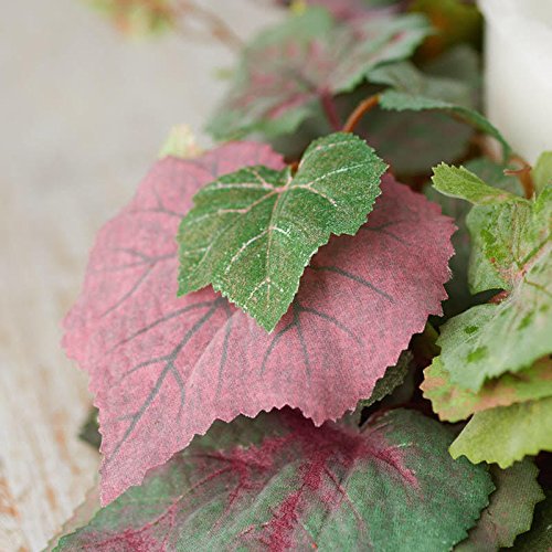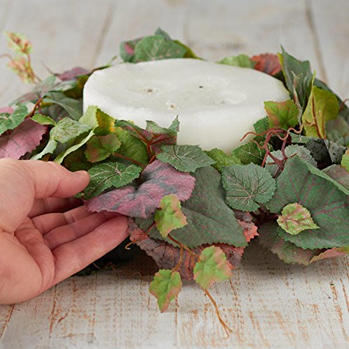 Factory Direct Craft Set of 2 Green Artificial Grape Leaf Candle Rings With Burgundy Accents for Displaying, Crafting and Decorating