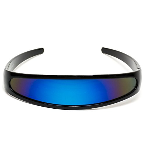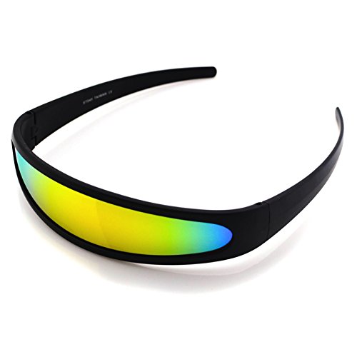 Futuristic Narrow Cyclops Color Mirrored Lens Visor Sunglasses