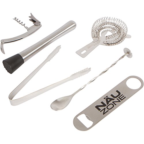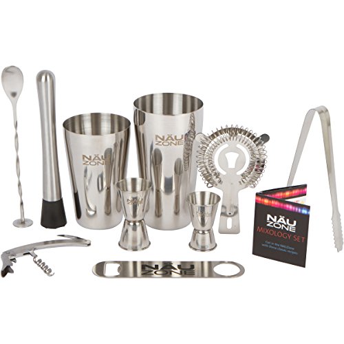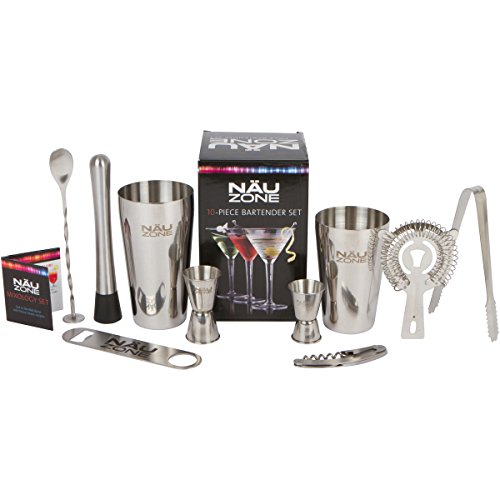 -. Brand : NAUZone -. Feature : Premium Stainless Steel Boston Shaker Drink Mixing Set with all the pieces you need to make the perfect mixed drink / Starter Mixology Guide with 7 Classic Recipes everyone should learn / Classic Large 25 oz Boston Shaker with 16 oz Cheater Cup. The cups fit perfectly with each other for leak proof shaking / One Large Jigger and one small Jigger to meet your recipe measuring needs / Satisfaction Guaranteed by NauZone -. Label : NAUZone -. Manufacturer : NAUZone -. ProductGroup : Kitchen -. ProductTypeName : KITCHEN -. Publisher : NAUZone -. Studio : NAUZone -. Title : Bar Set: Premium Boston Shaker Barware Set. 10 Piece Bartender Kit Includes Bar Kit Supplies for Professional Drink Mixing. (10 Piece Bar Tool Set) 10 Piece Bartender Set