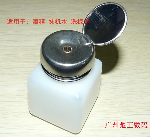 可广泛地运用于电子生产厂家和各种实验室、研究室。 不锈钢材料可抗强力腐蚀性溶剂的侵蚀。 独特机械结构的不锈钢泵和高密度聚乙烯材料制作的瓶身完美组合,可以用来盛放各种溶剂。 可盛放各种清洁剂,去油剂,松香清洁剂,乙醇,纯酒精,甲醇,丙酮,水基溶液。 防静电的设计在需静电防护的环境中安心使用。 每个酒精瓶的泵头在出厂时均用塑料薄膜密封,以保证瓶内的绝对清洁。 轻压一次泵头,即可获得适当的用量,防止过量的溶剂外溢及污物渗入瓶内。 泵头附有一个带铰链的不锈钢盖,可防止在不用时杂质进入瓶内。 精密设计的泵头阀门可以保证内装的溶剂不被挥发。