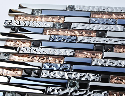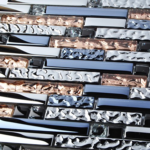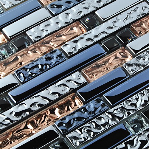 TST Mosaic Tiles Crystal Glass Tile Interlocking Black Brown Mosaic Bath Kitchen Fireplace Decor TSTGT107 -SAMPLE (1 Sample [3'' x 6''])