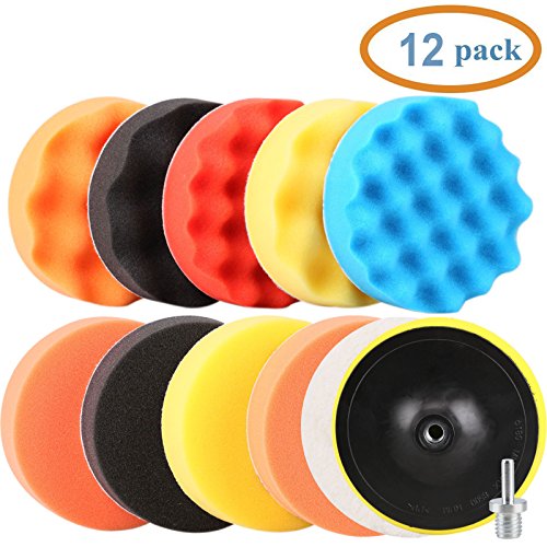 SPTA 12pcs 4in/100mm Foam Buffing Polishing Pads with Drill Adapter Kit for Car Polisher- Sanding Polishing Buffing--5/8"-11 Thread (USA Thread)