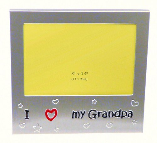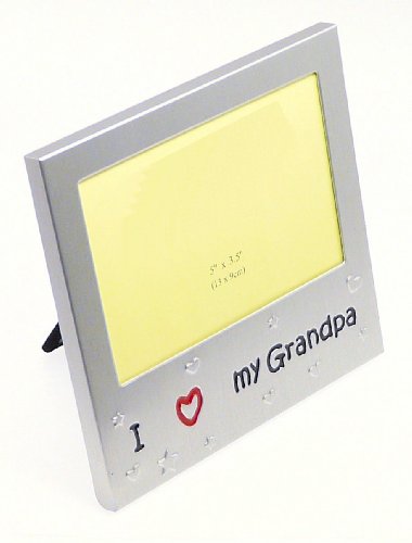 I Love My Grandpa - Photo Picture Frame Gift - 5 x 3.5 " - Brushed Aluminum Satin Silver Colour. A really beautiful superior quality frame making a great gift from Grandchild to Grandad for Christmas, his birthday or any occasion.