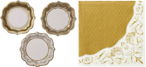 Talking Tables Party Pack - Party Porcelain Plates and Gold Napkin