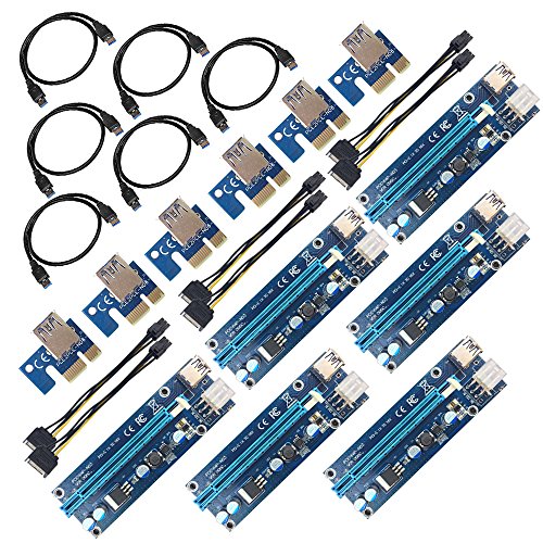 -. Feature : ITEM NAME -- Version 6 C Powered Riser Card. 6-Pin VGA Power Supply Input. / 6P POWER -- 6-pin PCI-E power to 15-pin SATA power cable for direct connection to your power supply reduces the power burden on your motherboard and ensures maximum compatibility with your power supply. / MINING RIG -- The perfect solution for setting up Ethereum mining rigs, whether small open air rigs or large rack based miners. / SAFETY -- 4 High Quality Solid Capacitors, Voltage Regulation, and Overcurrent Protection. Gold plated contacts for flawless connectivity and a long lifespan. / WHAT YOU GET -- 6 Pieces PCI-E 16X Riser board. 6 Pieces PCI-E 1X Riser Adapter Card. 6 Pieces 60cm USB 3.0 Extension Cable. 6 Pieces 6-Pin PCI-E to SATA Power Cable