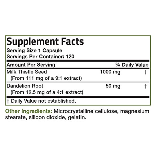 -. Feature : LIVER HEALTH SUPPORT: The liver helps the body remove toxins and converts nutrients from our body into substances we can use. / ANTIOXIDANT SUPPORT: Milk thistle is a powerful antioxidant that can help maintain healthy liver function.* / HIGH POTENCY: Each capsule contains 1,000mg of milk thistle to provide high-power liver support and contains an additional 50mg of dandelion root for additional benefits.* / HIGHLY REGARDED AND RECOGNIZED: Our Products Have Been Consistently Recommended By The Foremost Nutritional Scientists Like Nobel P.R.Ize Winner, Dr. Linus Pauling / WORKS OR YOUR MONEY BACK: We back our products up with a 365-day hassle-free money back guarantee. There's no risk when you order now!