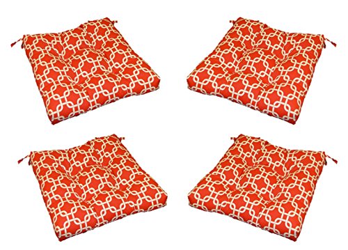 -. Title : Set of 4 - In / Outdoor Red and White Geometric Gotcha P.R.Int Universal Tufted Seat Cushions with Ties for Dining Patio Chairs - Choose Size