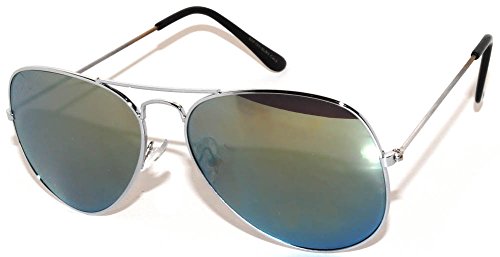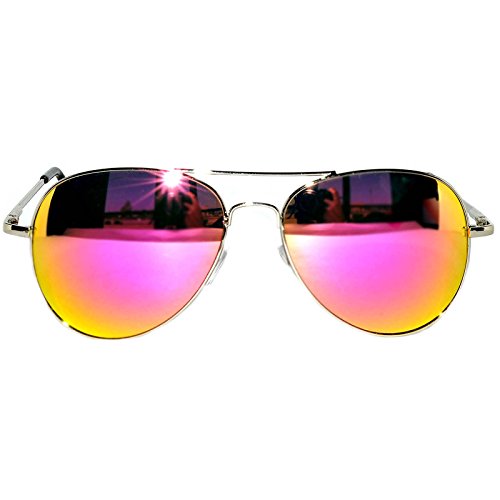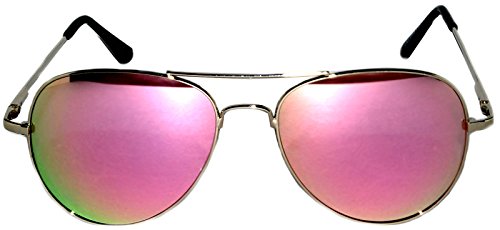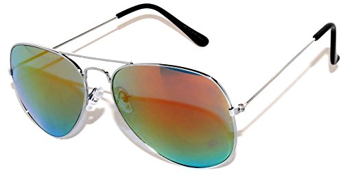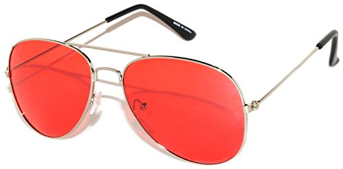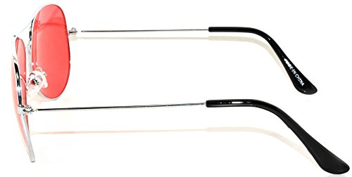 Classic Aviator Style Sunglasses Silver Metal Frame Red Lens