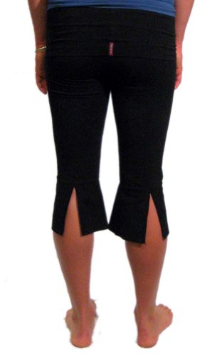 "V" Slit Roll Down Yoga Capri by Hard Tail (Black, Small)