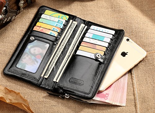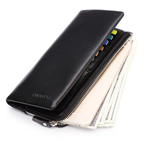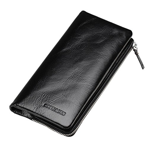-. Title : Contacts Men's Genuine Leather Long Wallet Purse Zipper Pocket Clutch Phone Holder