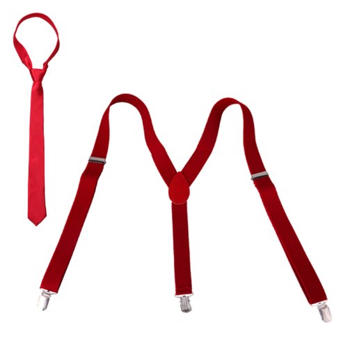 Binding : Apparel Product Description You're the kind of man who likes to make a statement with your clothes. Make your clothes express your unique personality with a pair of solid color suspenders and a matching necktie. Anyone can rock the necktie, but it takes a real man to keep his pants up with something besides the belt. Break away from the mold, become a trend setter, and show the girls your intriguing personality with the pairing of necktie and suspenders. 0