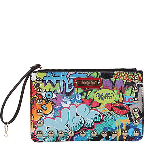 -. Feature : Exclusive NL "Street Style" Graffiti-Print with Gold tone stud detailing / Wristlet strap zipper closure / Interior Features: One main compartment for all essentials with Pop Stripe print nylon lining / Vegan leather wristlet handle with 3.5" inch drop. / For cleaning, wipe with damp cloth.