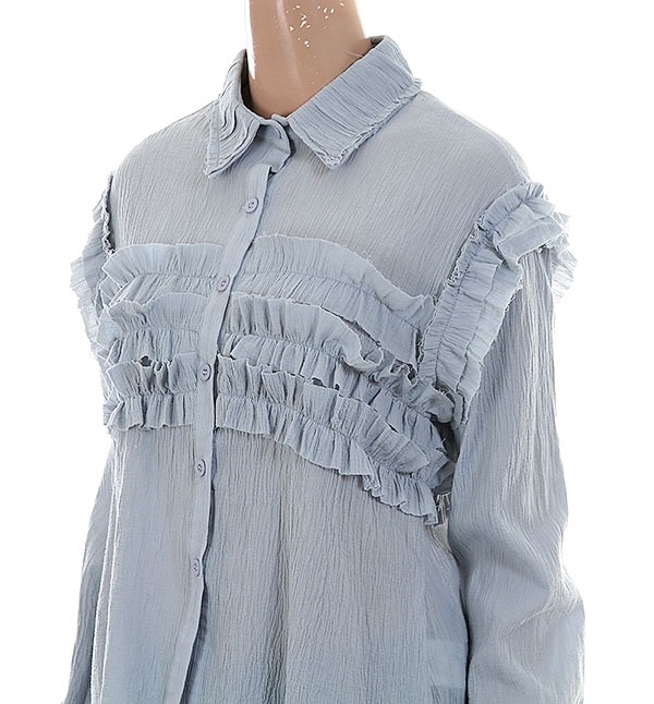 기본 블라우스에 프릴이있어 귀엽고 깝찍한 스타일의 블라우스입니다