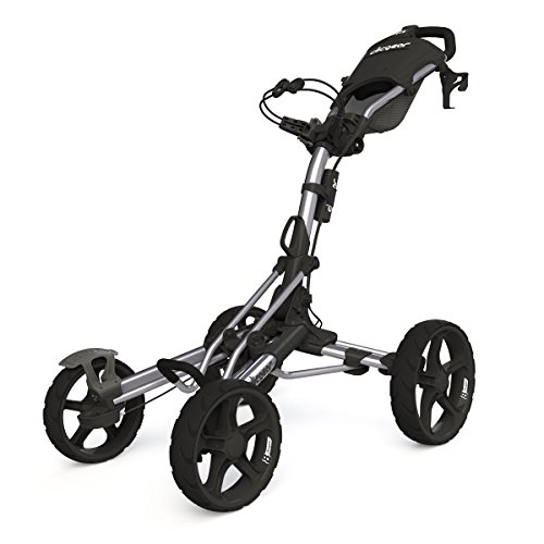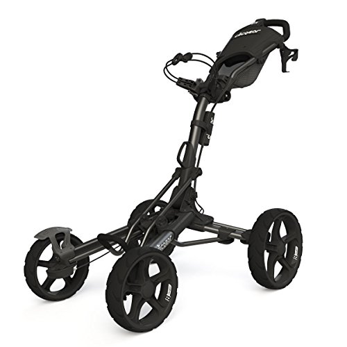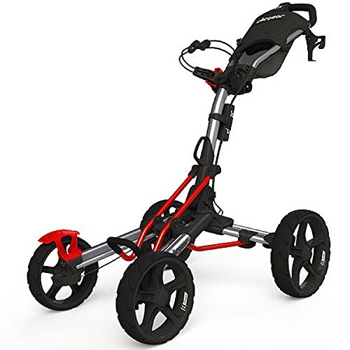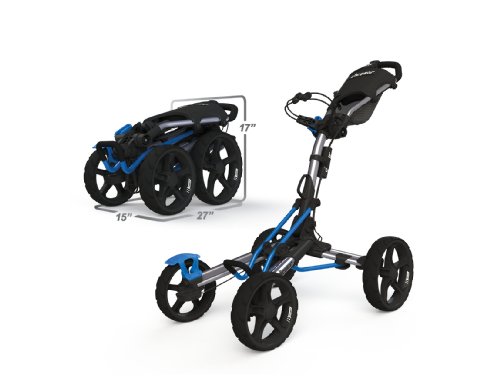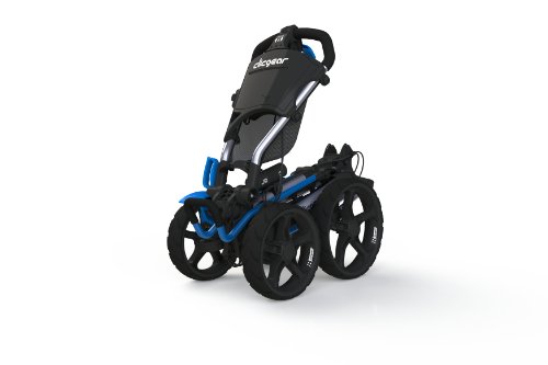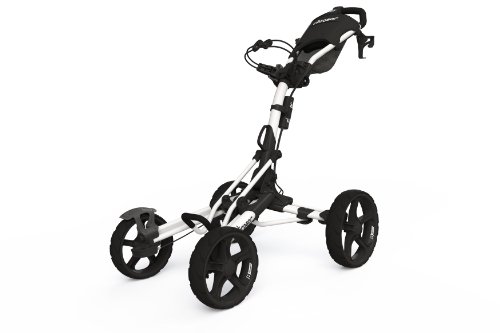 2014 brings the exciting new cart introduction from Clicgear, the Model 8. Available in April, the Model 8 is Clicgear's first 4-wheel cart design and quite simply the most advanced 4-wheel cart in the industry. The Model 8.0 features the new and patented 4XFOLD technology that allows all four wheels to fold, making for a much smaller folded size. This technology also allows the front wheels open wider as well, for greater stability. The Model 8 is the first 4-wheel cart to feature a front brake, incorporating a unique dual-brake design. One easy pull of the brake handle activates both front brakes. The dual front brakes allow for the cart to be quickly maneuvered around the green with the brake on. The Dual front wheel alignment makes this the first four wheel cart that can be adjusted to track straight. Each wheel can be adjusted independently.Feature