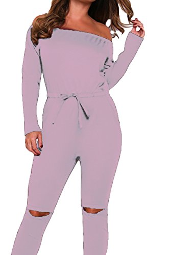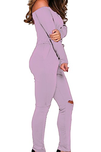 Feature : Material:Cotton blend(Solid and soft fabric,Not easily to pilling and wrinkle) / Elasticly Off Shouder;Long Sleeve;High Waist;Waist Drawstring for adjustment! / Long Harm Knee Ripped Hole Pants with Two Big Pockect. / Occasion:Casual street wear;or wear to sport;YOGA;Or Go to Club. / Size Chart:S=US 4-6,M=US 8-10,L=US 10-12,XL=US 14-16,XXL=US 16-18.Woman who with plump breast and hips, please CHOOSE 1 SIZE UP