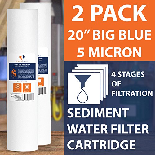2-PACK Of 5µm Big Blue 20"x4.5" Sediment Water Filter Cartridge for Whole House by Aquaboon