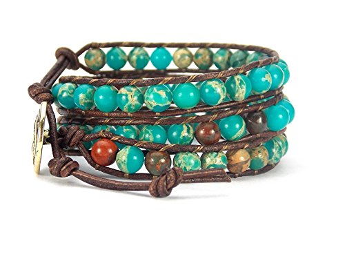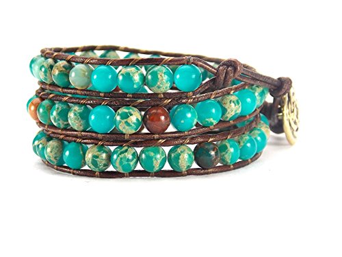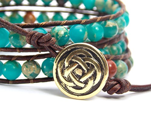 Celtic Knot Meaning! The spiral Celtic knot symbolizes that all things are connected in an unbreakable chain of life, love, family, motherhood, mother daughter relationship. It brings the spiritual world closer to us. Enjoy the rich colors of teal green jasper beads, rustic red and gold. Let these beautiful marbled beads bring creativity, strength and self-discipline into your life.