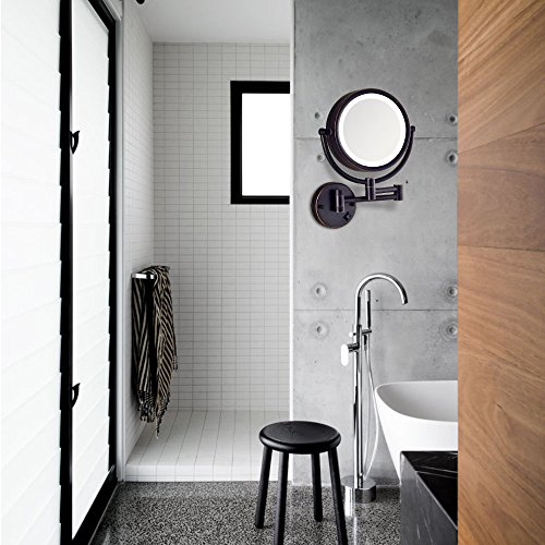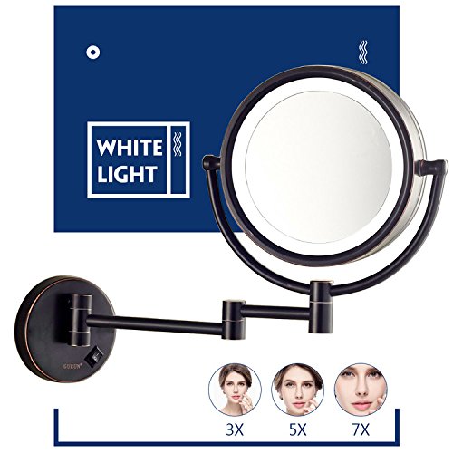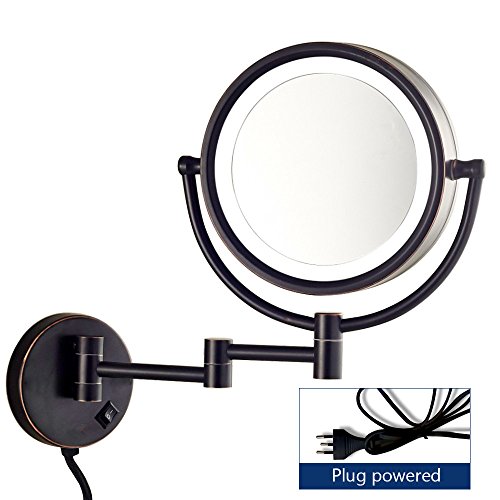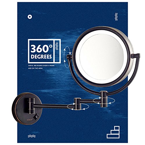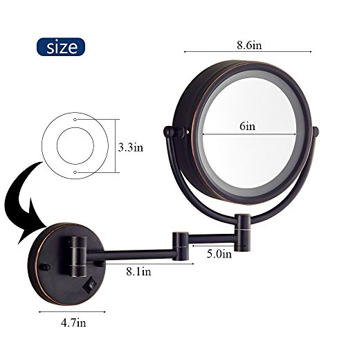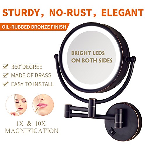 Gecious Wall Mount Magnifying Mirror with Light with 10X Magnification/LED Lighted/8 inches/Double Sided/Powered By Plug/Oil Rubbed Bronze finished