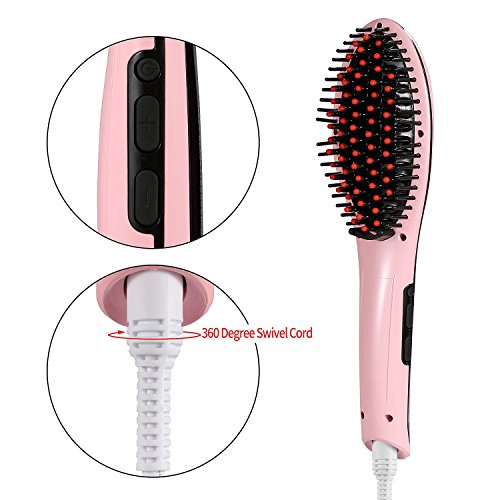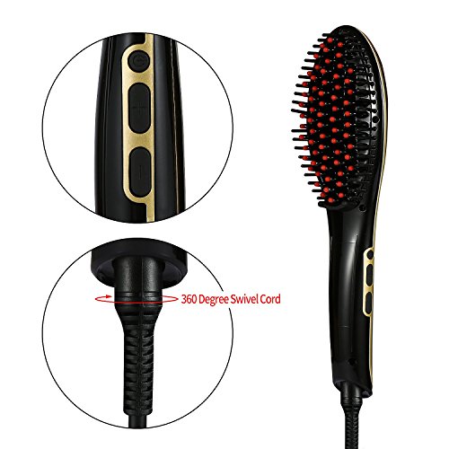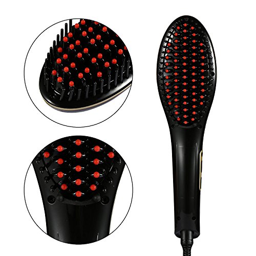 -. Feature : The Hair Straightener brush merges the ceramic iron straightener, detangling brush, anion hair massager together. Easy and fast straightening your hair with Instant Magic Silky Straight Hair Styling. / The Hair Straightener brush is paraben and chemicals free, and works in a low temperature which won't damage your hair. Anti-static technology reduces the amount of negatively charged particles during styling. Help nourish your hair. / Innovative design. LCD display indicates the brush's setting and temperature, you can read the temperature directly and set it easily . Soft bristles which are ergonomically designed to work with your natural brushing motion with ease. Softly and gently our brush massages the scalp while effortlessly separating hair aided by the evenly distributed heat. / Designed for easy hair caring. The Hair Straightener makes hair soft and makes frizz hair is easy to take care of. Efficiently reduce baldness, hair broken, and hair knotting. Ease of use for Men and Women. / The Hair Straightener is backed by 12-months limited warranty.