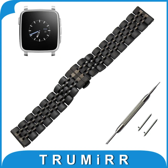 | [해외] 22 미리메터 스테인레스 시계 밴드 조약돌 시간/스틸 butterfly 버클 스트랩 빠른 릴리스 손목 벨트 팔찌 + 봄 바 + 도구 |