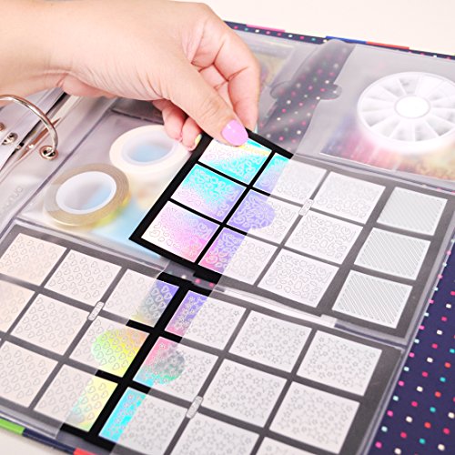 BMC Nail Plate Organizer Binder Sheets Starter Kit - 4 Square Sheets + 4 Rectangular Sheets + 2 Universal Sheets + 1 Mesh Pocket Compartment