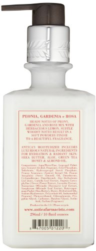 Antica Farmacista Body Moisturizer has an incredibly luxurious formula, providing superior, long-lasting hydration for even the driest skin. It includes natural moisturizing ingredients such as aloe vera, apricot kernel oil, green tea and fruit extracts, sweet almond oil, silk amino acids and proteins, shea butter and honey. Its soft texture is flawless and leaves skin radiant.Feature