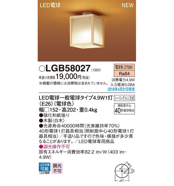 ●形数:白熱電球40形1灯器具相当